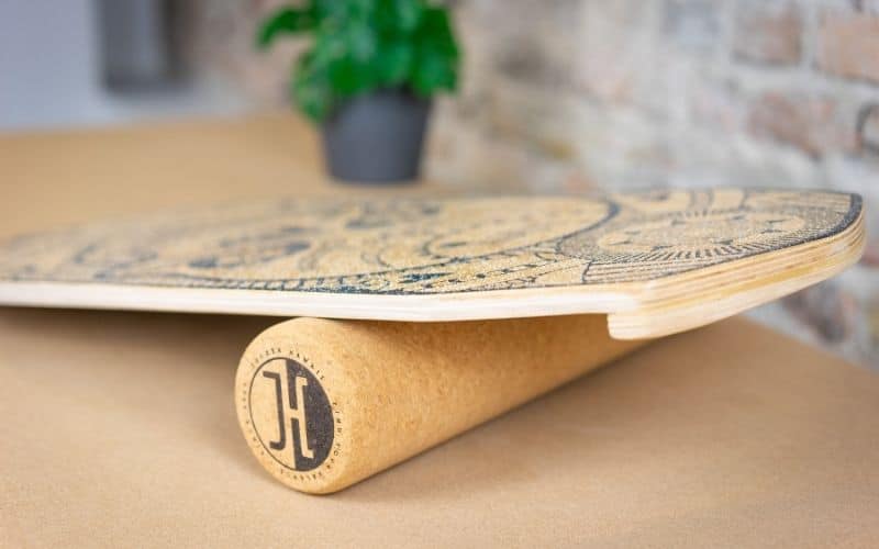 3. Position the Roller: Place the cork roller on the ground, parallel to the balance board’s length. Center the roller underneath the board so that it provides even support.