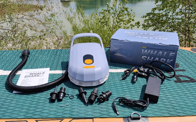 Aside from inflating paddleboards, the Airbank D6 Pro Whale Shark Pro can also be used for various other inflatables, thanks to the included valve adapters.