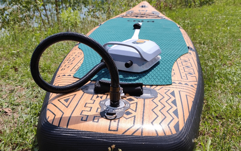 This electric pump is well-suited for individuals, families, or groups looking to swiftly set up multiple paddleboards without breaking a sweat.