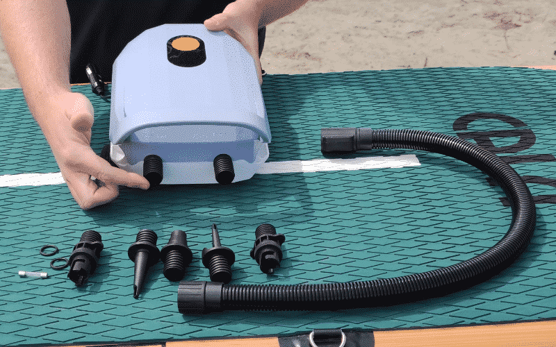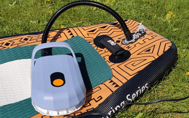 The Airbank D6 takes under 8 minutes to inflate a standard paddleboard.