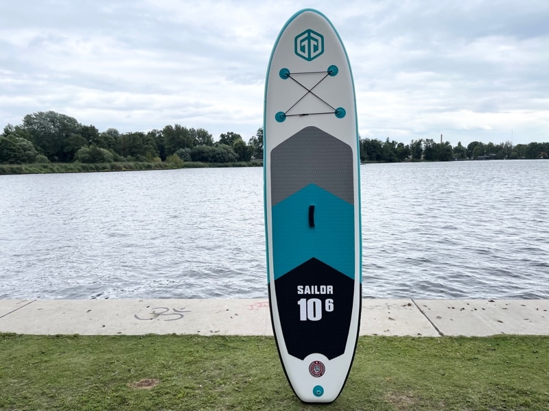 The Goosehill Sailor is an enticing all-round stand-up paddleboard suitable for novices. With measurements of 10’6″ x 32″ x 6″, it provides the ideal combination of stability and maneuverability. Even featuring a 3-piece adjustable paddle, reversible double-stroke air pump, and other vital accessories, it justifies its mid-range pricing quite well.