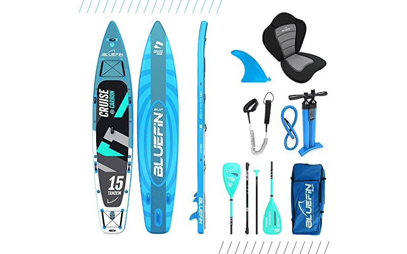 The Bluefin Cruise Tandem 15′ is an impressive dual paddler inflatable SUP made with quality materials and modern fusion construction. Its larger dimensions make it ideal for both novice and advanced paddlers looking to share the adventure.