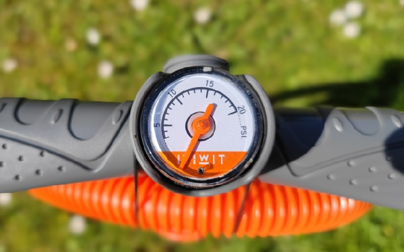 - Pressure gauge: The Decathlon Itiwit pump includes a pressure gauge that provides pressure readings up to 20 PSI. This feature ensures that users can accurately inflate their SUP boards according to the desired pressure levels.
