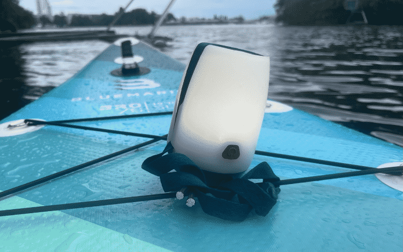 However, while it does offer IPX4 splash protection, the Decathlon Quechua BL100 camping lamp is not an officially approved SUP lighting device due to its insufficient water resistance against full submersion. It is recommended to use the lamp as supplemental lighting for your board and surrounding area for safety during dusk and nighttime paddling.