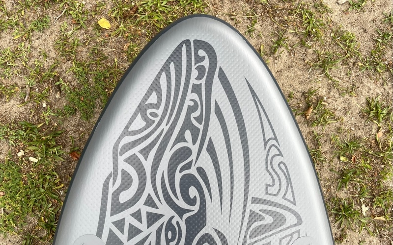 - Large Deckpad: The board’s deckpad is made from a comfortable and slip-resistant EVA material, providing a secure and comfortable platform for paddling, even with wet feet.