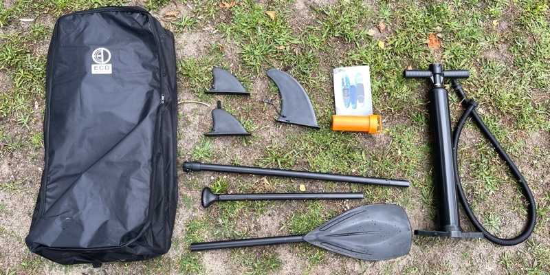 - ECD Germany Makani Backpack: The Makani comes with a simple, black backpack that has a main compartment suitable for storing the rolled-up board and accessories. However, the backpack’s narrow, lightly-padded shoulder straps may be less comfortable than those found on more premium models.