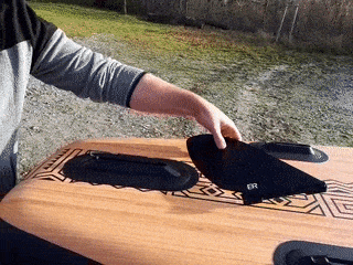 - Attach the Fin: Open the lever on your SUP board’s fin box, slide the fin with the small pin into the rail, then press the rear part downwards. Close the lever to secure the fin in place.