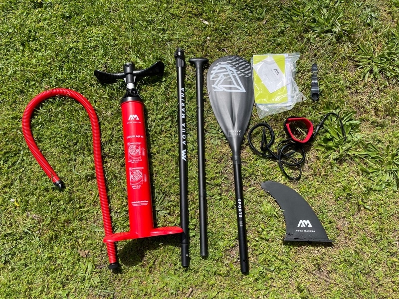The Aqua Marina Fusion set comes with essential accessories such as a backpack, pump, paddle, and leash, providing an all-in-one solution for beginners.