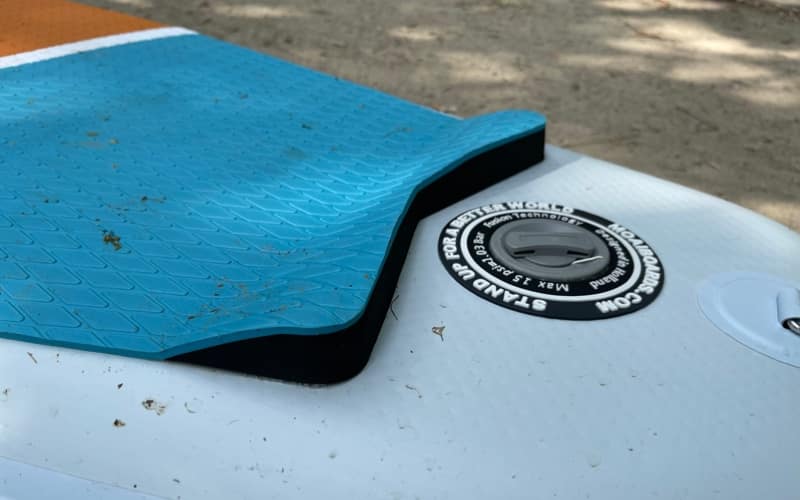 - Deckpad with Kickpad: The MOAI Allround 11′ features a soft, non-slip EVA deck pad that provides comfort and grip while paddling. Additionally, the board comes with a kickpad at the rear, which allows for better maneuverability and easier turns on the water.