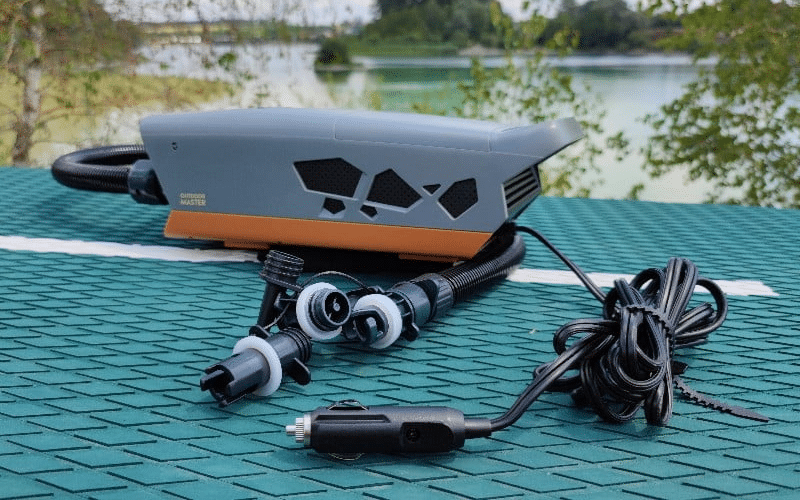 The OutdoorMaster Cachalot electric pump is designed to efficiently inflate items such as stand-up paddleboards (SUPs), air mattresses, pool floats, and more, making it an excellent choice for paddlers and outdoor enthusiasts alike.