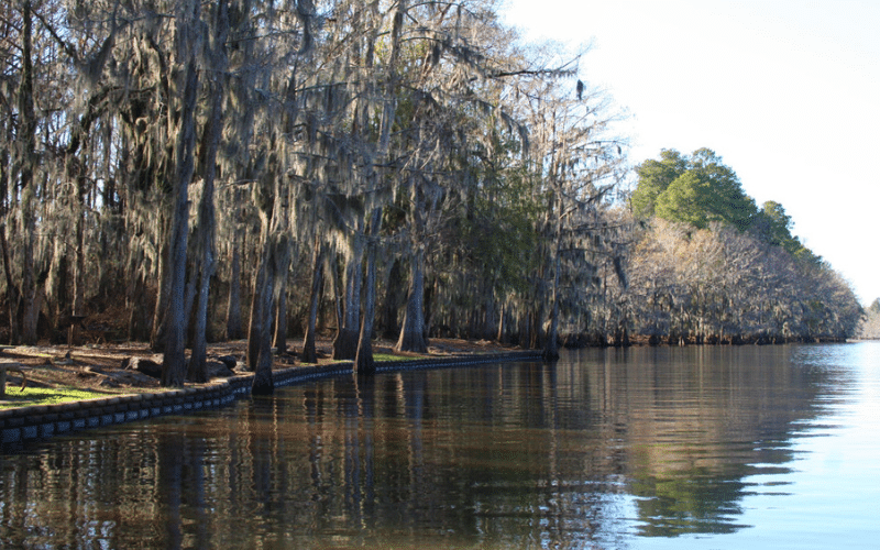- 🏞️️ Landmarks & Views: Bald cypress trees with Spanish moss, swampy waterways