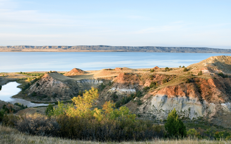 Sakakawea Lake, the largest reservoir in North Dakota, offers a vast expanse of water to paddle through. Surrounded by beautiful landscapes, it’s a great spot for a paddleboarding adventure.